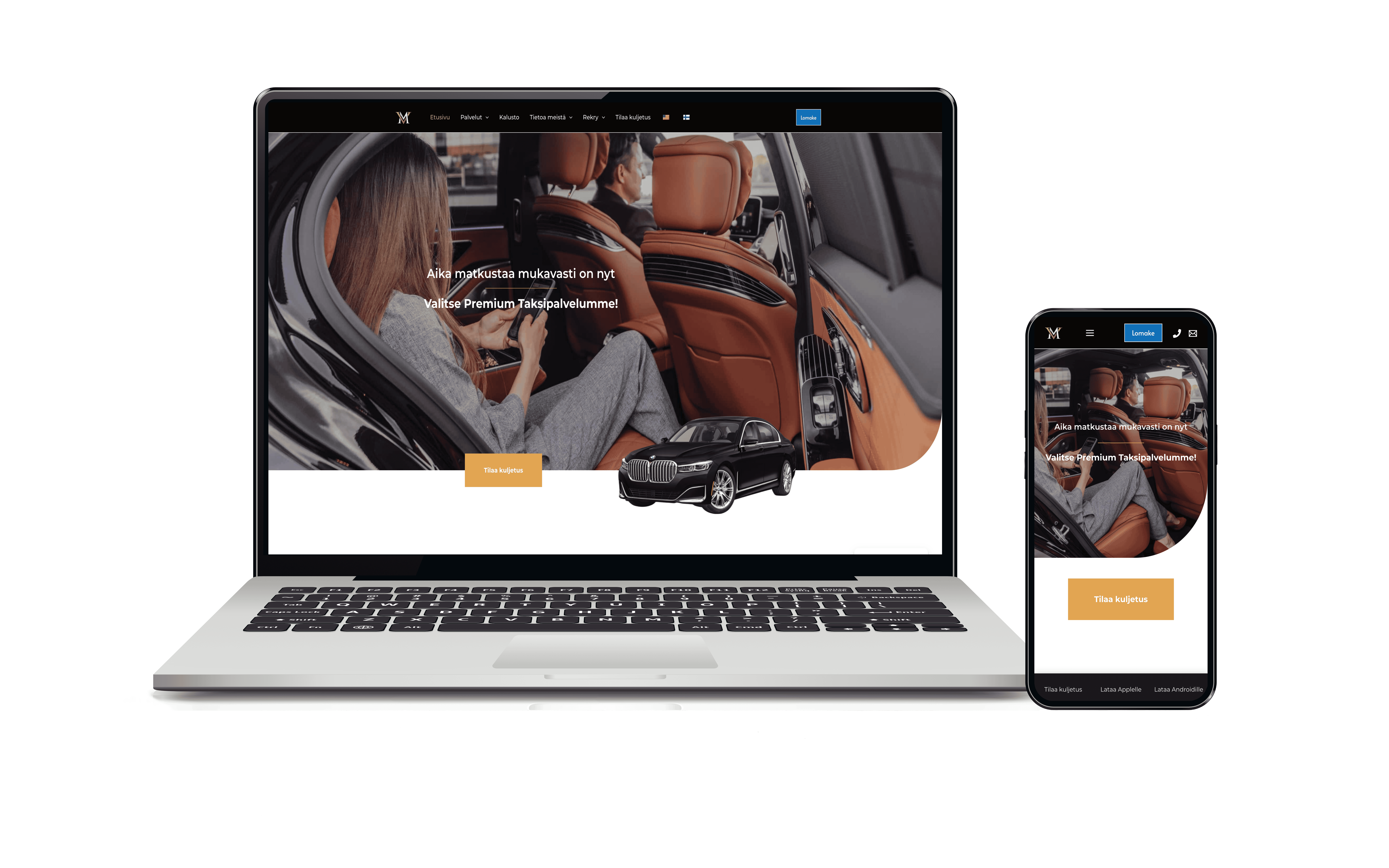 Verkkosivujen yhteyteen toteutettiin myös räätälöity tilausalusta, joka toimii sekä verkkosivulla että ladattavana mobiilisovelluksena. Asiakkaat ohjataan tekemään varaukset ensisijaisesti tätä kautta, mikä helpottaa sekä tilaamista että yrityksen arkea. Sovellus sisältää toimintoja kuten PDF-kuitit sähköpostiin, kalenteri-integraation, jonka ansiosta varaukset siirtyvät suoraan ajokalenteriin, sekä muita hyödyllisiä ominaisuuksia. Tilausvahvistus tapahtuu jälkikäteen, mikä mahdollistaa joustavan aikataulutuksen ilman 24/7 tavoitettavuutta. Kokonaisuus on tuonut asiakkaalle mitattavaa hyötyä sekä näkyvyyden että toiminnan sujuvuuden kannalta.